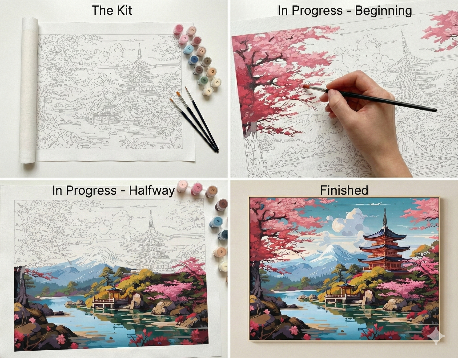 With soft sakura blooms 🌺, reflective waters 🌊, and a timeless pagoda 🏯, Stillness of Sakura transforms painting into a mindful ritual 🧘♀️🎨